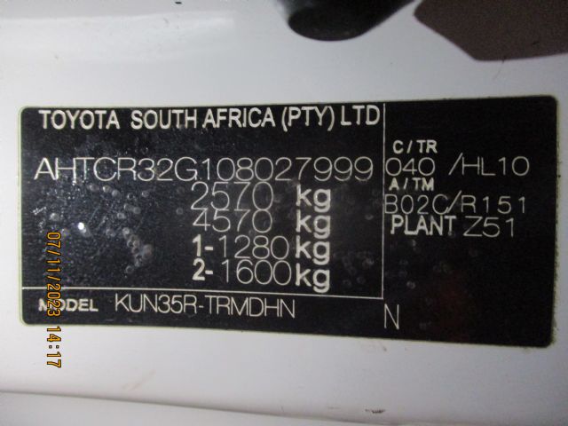 | Model: | HILUX D-4D 2.5 SRX |